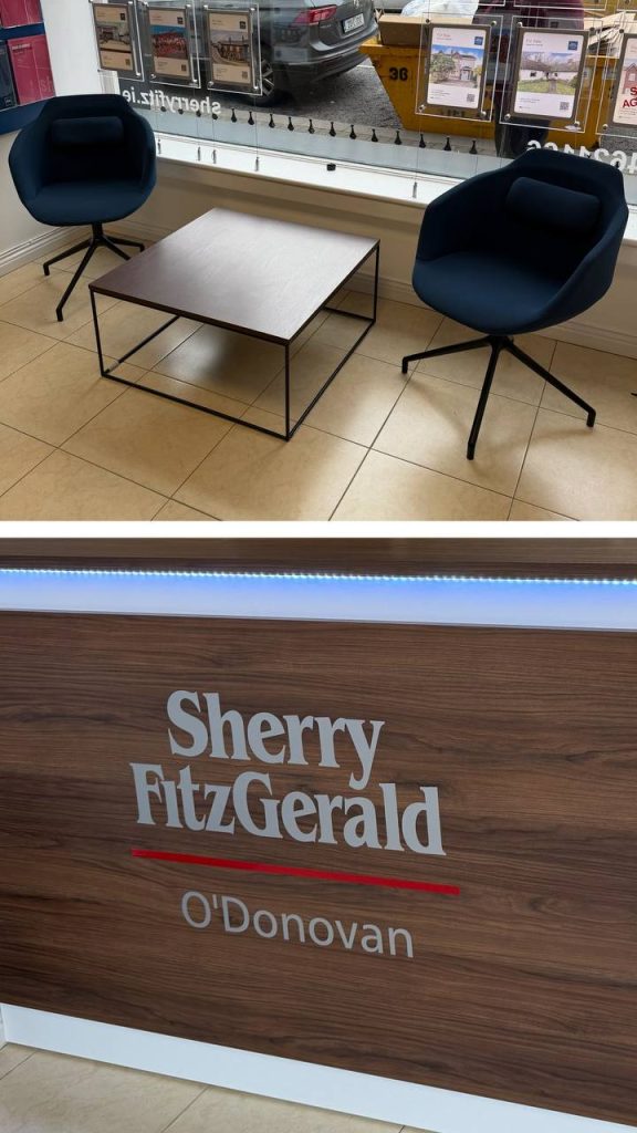 Reception desk ,chairs and coffee table for Sherry FitzGerald